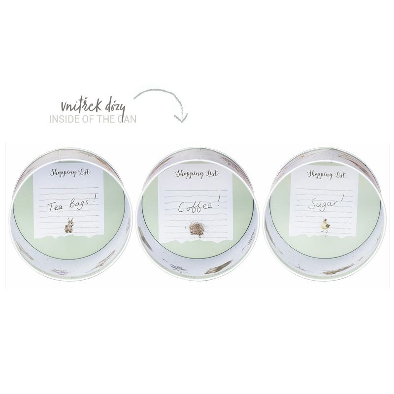 Dodejte své kuchyni jedinečný nádech s těmito sladěnými dózami na kávu, čaj a cukr! Chrání obsah před vlhkostí a světlem, každá má kulatý tvar a je příslušně nadepsaná, abyste si je nikdy nespletli. Dózy jsou ilustrované ze všech stran – kolem dokola zvenčí i zespodu, další ilustrace jsou z obou stran pevně uzavíratelného víčka, plně ilustrované jsou i uvnitř. Kromě ilustrací zvířátek mají dózy také elegantní nápisy, barevně odlišené lemování a velmi příjemný matný povrch.