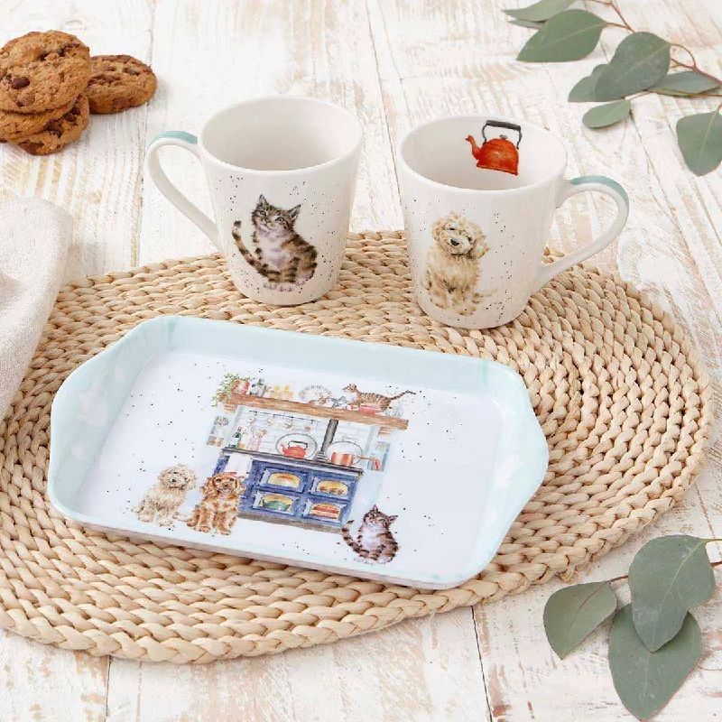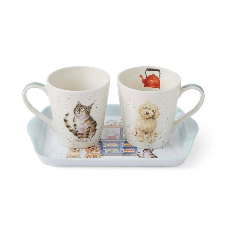 Tato dárková sada značky Pimpernel s ilustracemi od Wrendale Designs obsahuje melaminový tác a dvojici porcelánových hrnků, které zaručeně zpestří vaše stolování. Melaminový podnos je ideálním pomocníkem na servírování horkých nápojů anebo oblíbeného dezertu. Hrnečky se skvěle vejdou pod kávovar, jsou tedy ideální pro všechny milovníky kávy. Na podnose i na hrnečcích jsou malby pejsků a kočiček. Díky dárkovému balení se stuhou bude tento set krásným dárečkem – pro milovníky chlupatých kamarádů doporučujeme i další dárky pro mazlíčky.