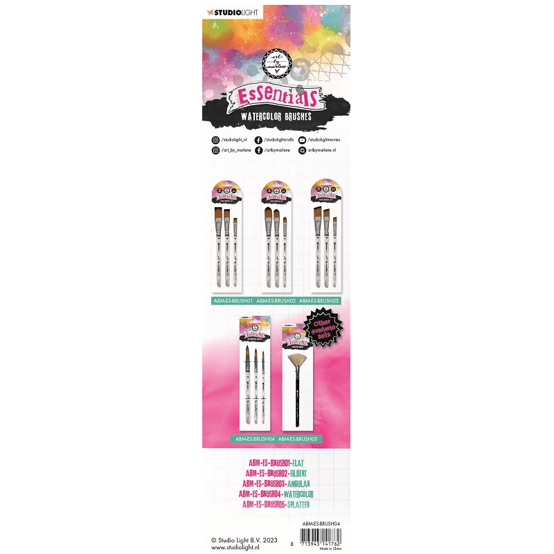 Štětci od výtvarnice Marlene Meier-van Niekerk lze malovat větší plochy, ale také detaily a tenké linie. Mají průhlednou plastovou rukojeť, pohodlně se drží. Vlas je nylonový. Štětce jsou odolné, vhodné pro intenzivní používání. Jsou ideální pro akvarelové barvy.