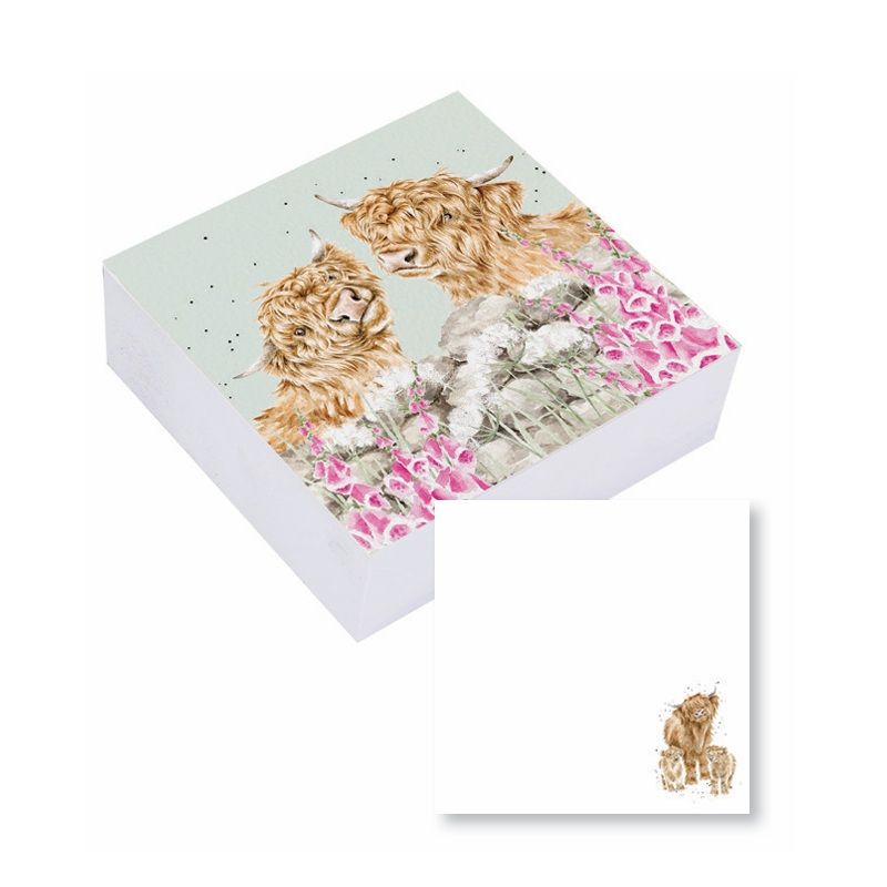 Vyměňte obyčejné neonové papírky za atraktivní samolepicí bločky s potiskem od anglické značky Wrendale Designs a zpříjemněte si každodenní povinnosti! Na přední straně bloku je akvarelová ilustrace páru kraviček, v rožku každého listu je kraví maminka s telátky. Strany mají čistě bílou barvu a nejsou linkované, takže můžete psát i črtat bez omezení.