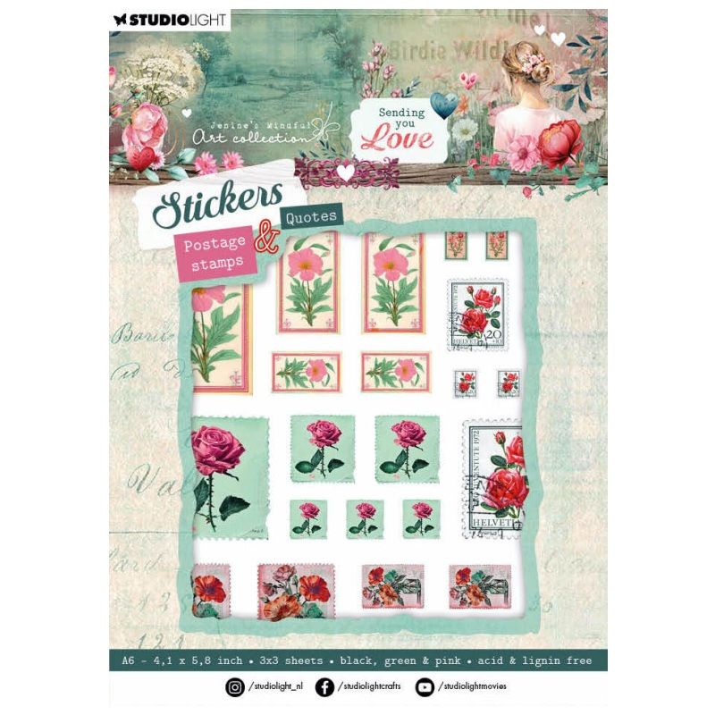 Sada samolepek ze zamilované kolekce Sending You Love kombinuje obrázky a texty ideální k doplnění nejrůznějších papírových projektů. Motivy jsou květinové poštovní známky a anglické texty – mezi nimi najdete něžné citáty i věnování vhodná na přání k narozeninám, k brzkému uzdravení a dalším příležitostem.