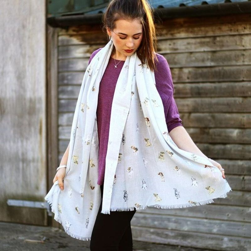 Lehký dámský šátek na krk s originálním psím designem. Extra měkká látka, velký rozměr vhodný k jakémukoli outfitu. Materiál: polyester. Rozměr 70 x 190 cm. Celý popis