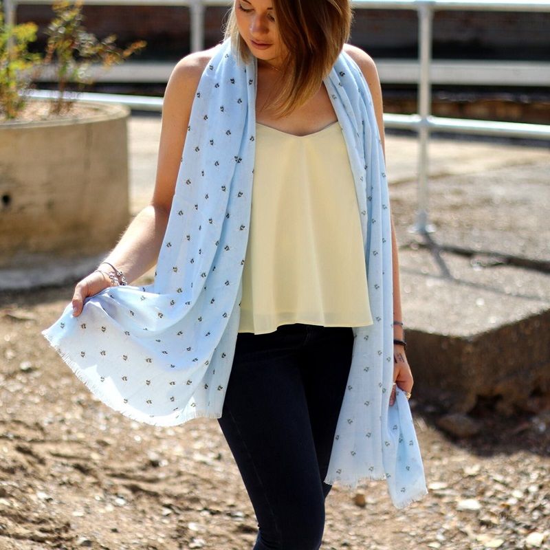 Díky své velikosti jde nosit různými způsoby – klasicky obtočený kolem krku, přehozený přes ramena nebo přes hlavu. Hravě a neobyčejně doplní šaty či halenku, hodí se i přes plavky nebo svetr. K šátku můžete sladit i další módní doplňky značky Wrendale Designs , třeba kabelky a peněženky nebo zrcátka a pilníky na nehty.