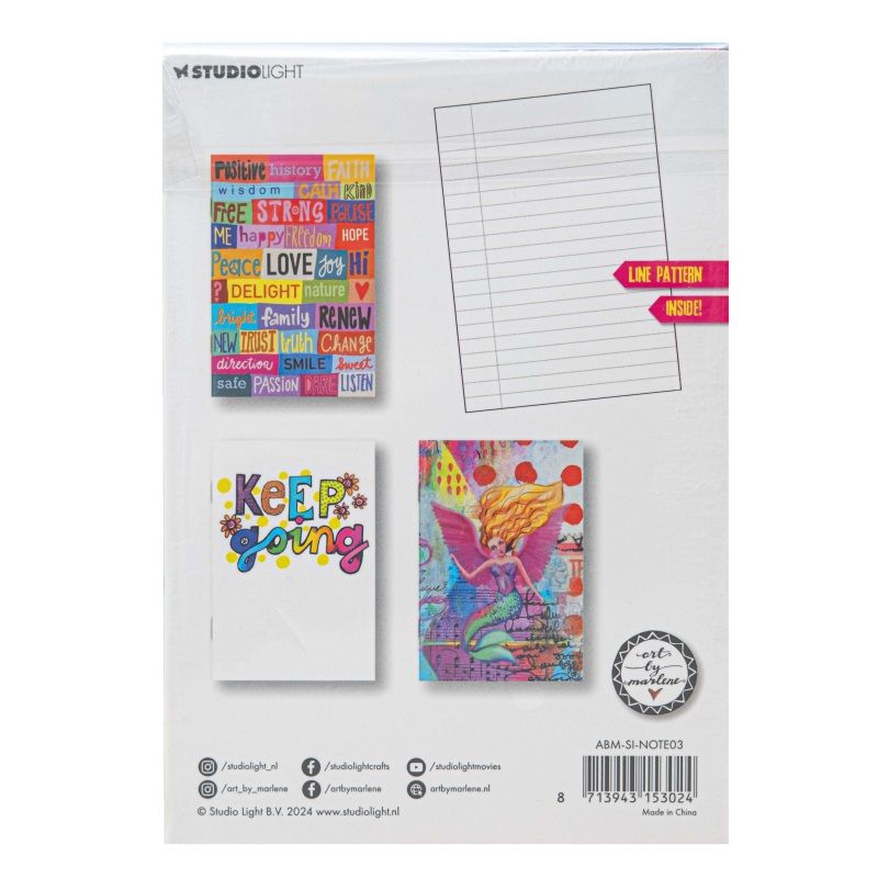 Set 3 sešitů s linkovanými stránkami využijete na psaní poznámek, vedení diáře či Bullet Journalu apod. Každý zápisník má na přední straně jiný veselý design od nizozemské výtvarnice Marlene Meier-van Niekerk, která vás nadchne svými bláznivými obrázky a veselými barvičkami.
