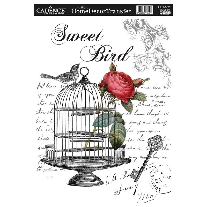 Transferový obrázek Cadence Home Deco, 25x35 cm - Ptačí klec s růží
