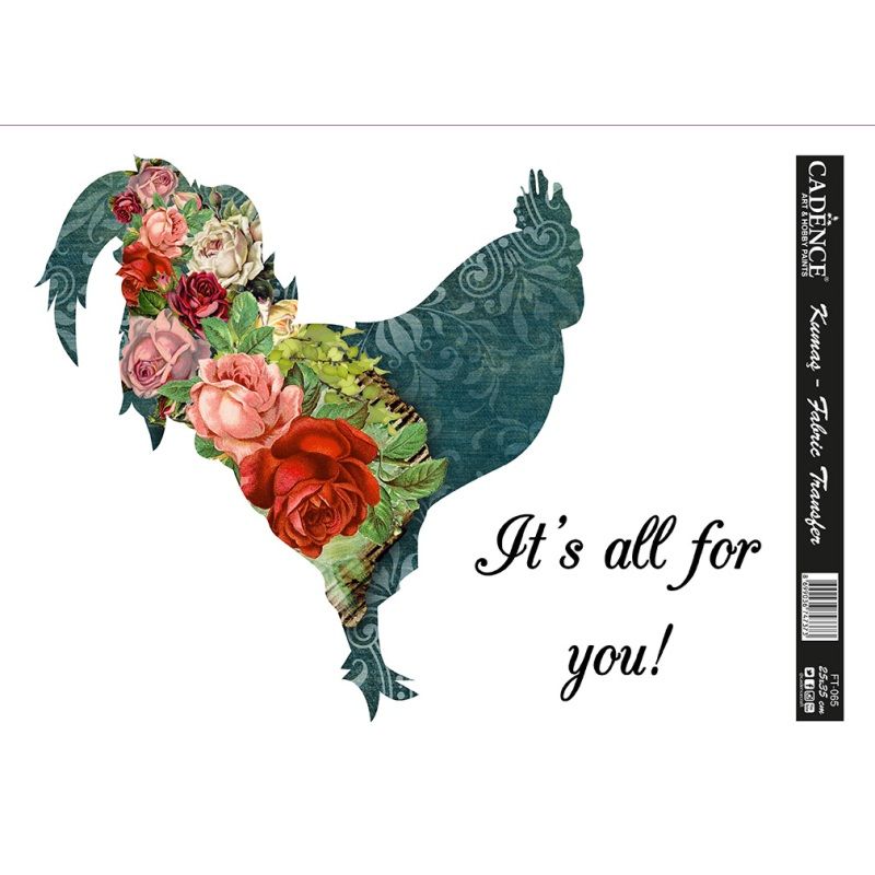 Nažehlovačku na textil lze použít na super snadné zdobení oblečení nebo na textilní bytové dekorace – jednoduchý návod najdete v delším popisu. Rozměr archu 25 x 35 cm. Motiv s květinovou slepicí. Celý popis