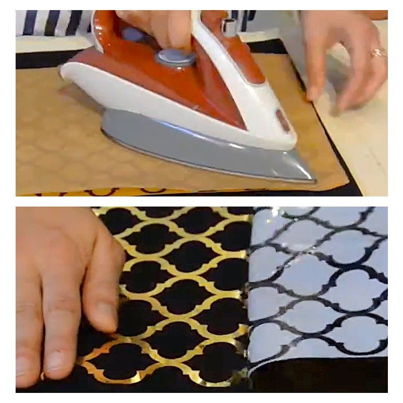 Upozornění – nažehlovačka, která vám přijde bude vypadat „obráceně“ – jako by metalická část byla černá a naopak. Tak je to v pořádku, barvy se na látku přenesou správně. Vizte obrázkový návod výše nebo mrkněte na video.