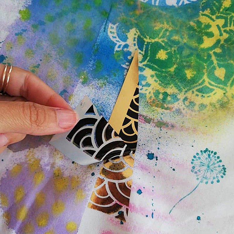 Metalickou nažehlovačku na textil lze použít na super snadné zdobení oblečení nebo na textilní bytové dekorace – jednoduchý návod najdete v delším popisu. Rozměr archu A3 (30 x 42 cm). Motiv zlaté vlny. Celý popis