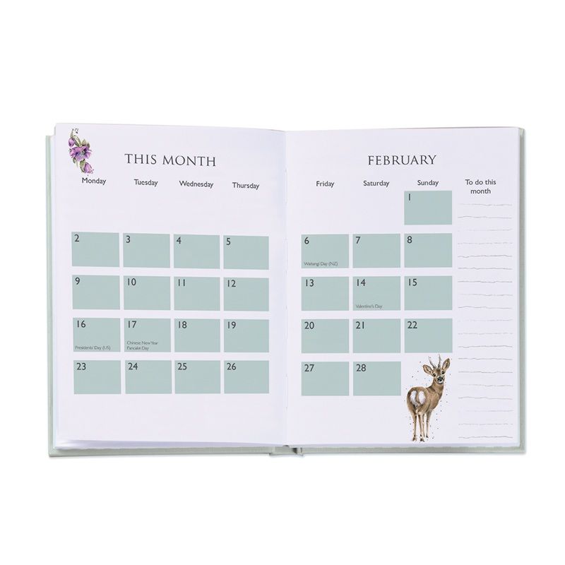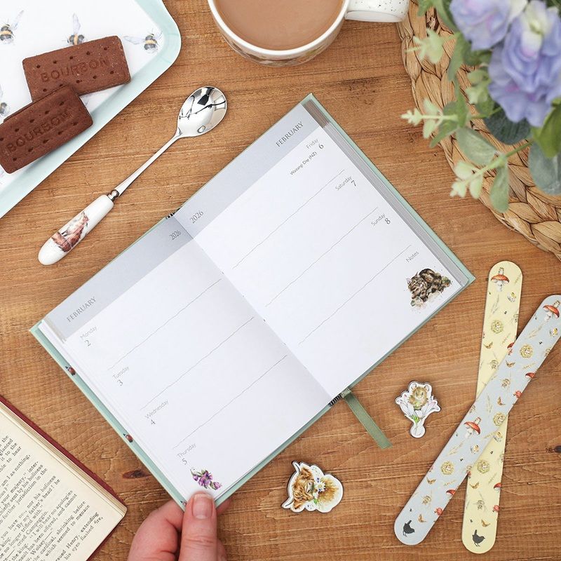 Plánovací diář na rok 2026 od britské značky Wrendale Designs je díky velikosti praktickým doplňkem do kabelky. Každému týdnu je věnovaná celá dvojstrana s prostorem na zápisky. Diář je úhledný a čistý, zároveň obsahuje krásné ilustrace zvířátek včetně spousty nových designů ze štětce Hanny Dale.