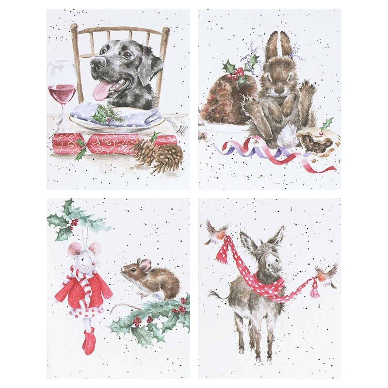 Vánoční dárkové kartičky Wrendale Designs, 16 ks, 4 motivy - Domácí Vánoce