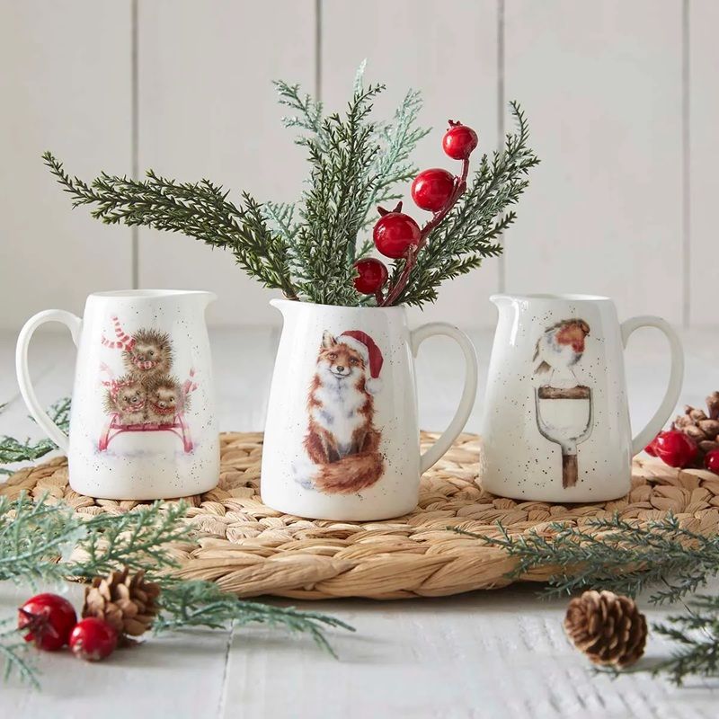 Vánoční porcelánový džbán na květiny Wrendale Designs "Festive Fox" - Liška