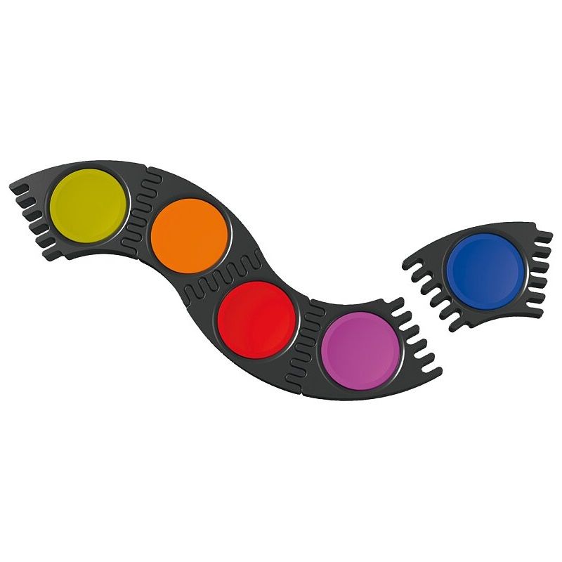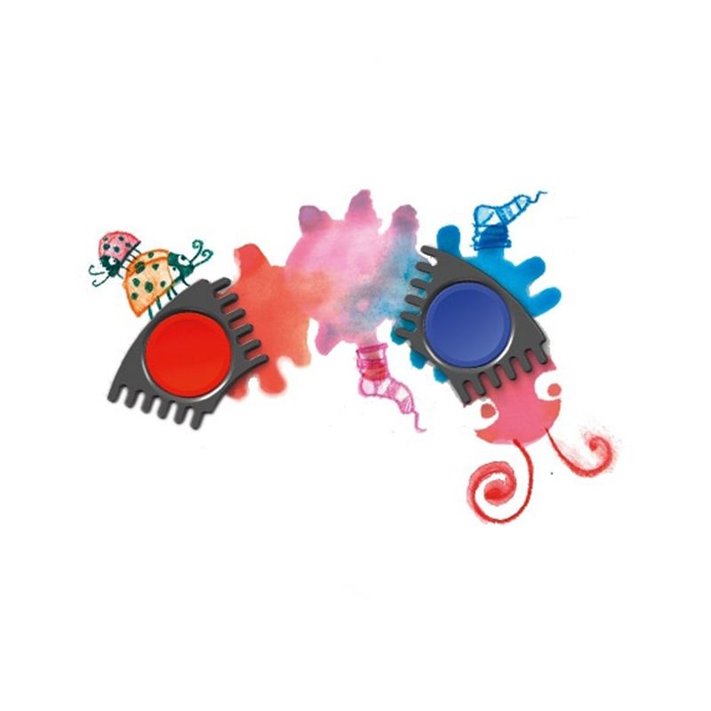 Souprava kvalitních německých vodovek přináší do dětského tvoření novou dimenzi. Jednotlivé části s barvou je možné rozložit a libovolně skládat. Díky této úpravě můžeme pro nejmenší děti izolovat jednu barvu a nerozptylovat jejich pozornost celou paletou barev. Děti se tak soustředí na práci se štětcem , nanášení barvy a vybarvování obrázku – využít lze obyčejné omalovánky nebo si vlastní obrázek narazítkovat.