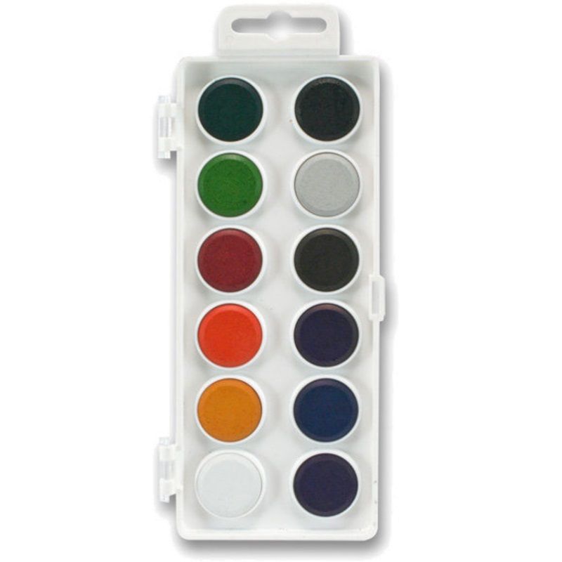 Paletka obsahuje 12 barev v pánvičkách o průměru 22 mm. Jednotlivé barvy lze mezi sebou míchat na plastovém víčku a získat tak nové odstíny.
