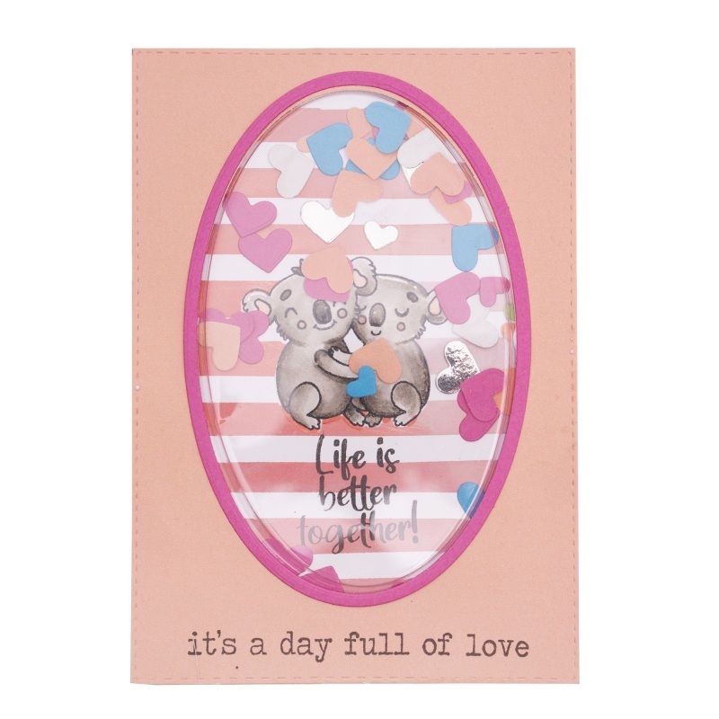 Kovové šablony ve tvaru oválků do vyřezávacího strojku typu BigShot. Šablony jsou kompatibilní s oválnými plastovými okénky a lze z nich společně vytvořit efektní chrastítko. V sadě najdete i drobné šablonky na malá srdíčka, která slouží jako drobná výplň chrastidla spolu s korálky, flitry nebo třpytkami. S těmito šablonami budete mít výseky hotové snadno a rychle. Jsou vhodné na papír, karton, pěnovku, korek či pergamen.
