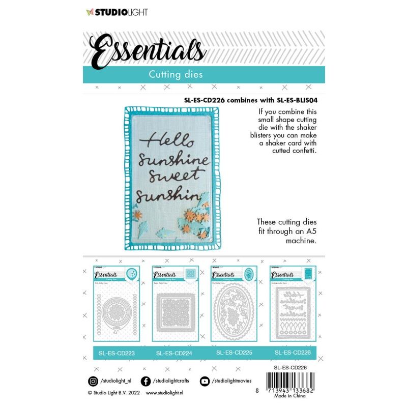 Kovové šablony ve tvaru obdélníků do vyřezávacího strojku typu BigShot. Šablony jsou kompatibilní s obdélníkovými plastovými okénky a lze z nich společně vytvořit efektní chrastítko. V sadě najdete i šablonky na malé výřezy, které slouží jako drobná výplň chrastidla spolu s korálky, flitry nebo třpytkami. S těmito šablonami budete mít výseky hotové snadno a rychle. Jsou vhodné na papír, karton, pěnovku, korek či pergamen.
