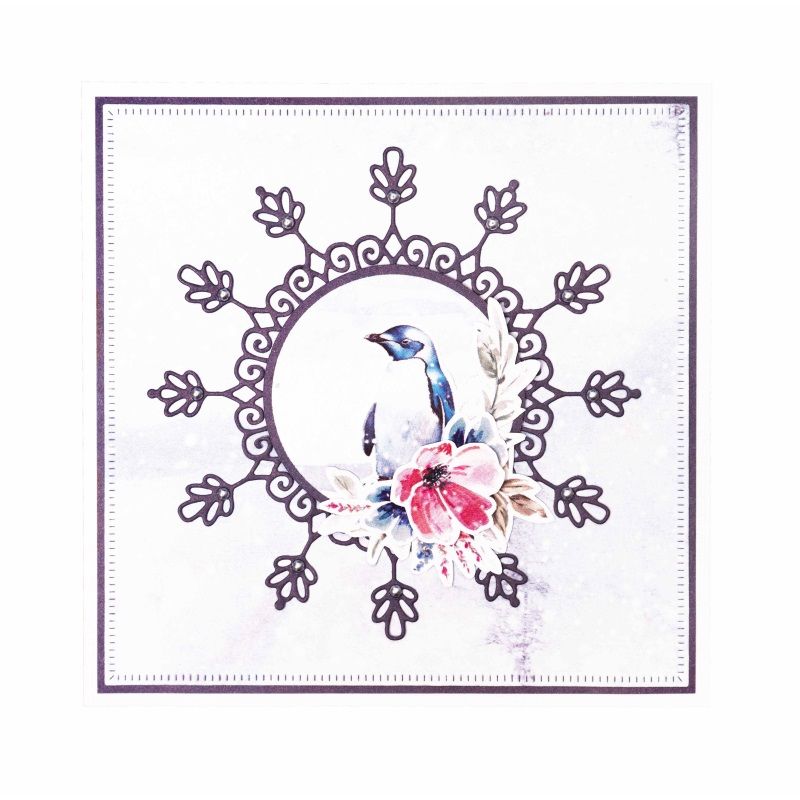Kovová vyřezávací šablona je vhodná do vyřezávacího strojku typu BigShot, který snadno a dokonale vysekne každý detail těchto vloček a ledové mandaly. Už nic nemusíte pracně vystřihovat. Vysekávat můžete z papíru, kartonu, pěnovky, korku, pergamenu i textilu.