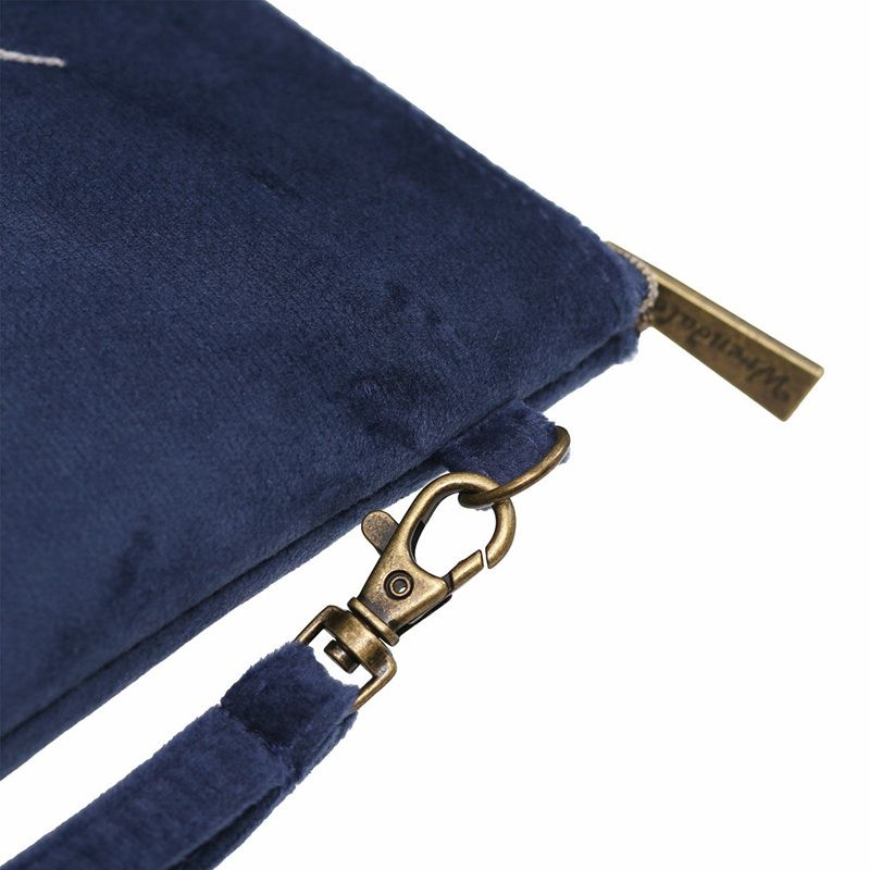 Má pevné zavírání na zip a celý vnitřek je z omyvatelného materiálu. Vnější povrch temně modré barvy je sametově hebký a evokuje pocit luxusu, který ještě umocňují kouzelné výšivky krav. Taštička bude krásným dárkem pro ženy , obzvlášť s překvapením uvnitř – zkuste třeba zrcátka a pilníky na nehty nebo papírové kapesníčky.
