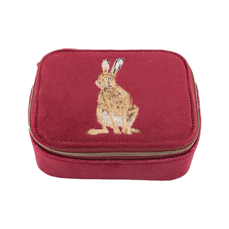 Pevné cestovní pouzdro nabízí dostatečný prostor na uschování šperků, hodinek, ozdob do vlasů nebo třeba rtěnek a další kosmetiky, pohodlně do něj padnou i krabičky na prsteny. Díky kompaktní velikosti se vejde do tašky či kufru, kde jeho robustní struktura ochrání všechny vaše poklady. Atraktivní vínová barva a výšivka zajíce z něj udělají ozdobu i domácího toaletního stolku.