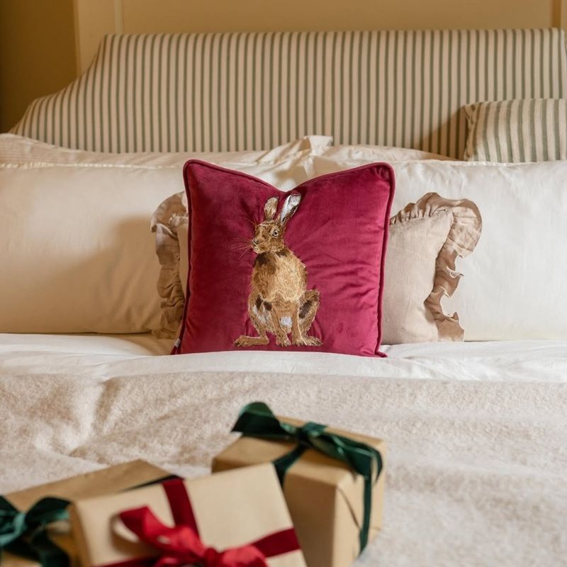 Dekorační polštář v sobě kombinuje úžasnou hebkost a designové pojetí typické pro naši oblíbenou britskou značku Wrendale Designs. Povlak z recyklovaného materiálu je sametově jemný na dotek, přední stranu zdobí komplexní výšivka se zajícem, kterou inspirovaly akvarelové malby Hanny Dale.