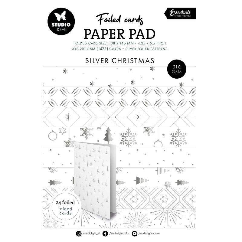 Kreativní blok na výrobu vánočních přání obsahuje 24 listů s 8 lesklými vzory ve stříbrné barvě. Každý list je v polovině narýhovaný, takže ho stačí z bloku vytrhnout a přeložit, vznikne tak přání formátu A6 (10,8 x 14 cm). Mezi motivy jsou klasické vánoční vzory (sněhové vločky, stromečky, hvězdy), ostatní využijete i na jiné slavnostní příležitosti (puntíky, geometrické vzory…).