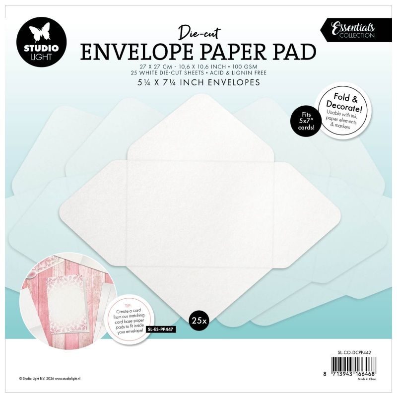 Kreativní blok od nizozemské značky Studio Light obsahuje 25 bílých listů se základy obálek. Ty jsou předvyseknuté, takže je stačí ze stránky pouze vyloupnout – nemusí se vystřihovat.