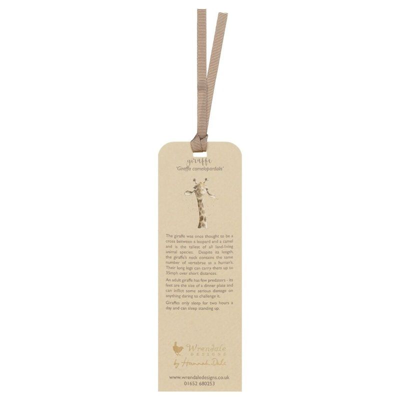 Chystáte se obdarovat knihomola? Darujte mu krásně ilustrovanou knižní záložku od firmy Wrendale Designs z pevného kartonu! Na přední straně je velká ilustrace žirafy ve zlatém rámečku, dírkou v horní části je provlečena barevně sladěná stužka. Na zadní straně je druhá ilustrace a informace o zvířátku v angličtině.