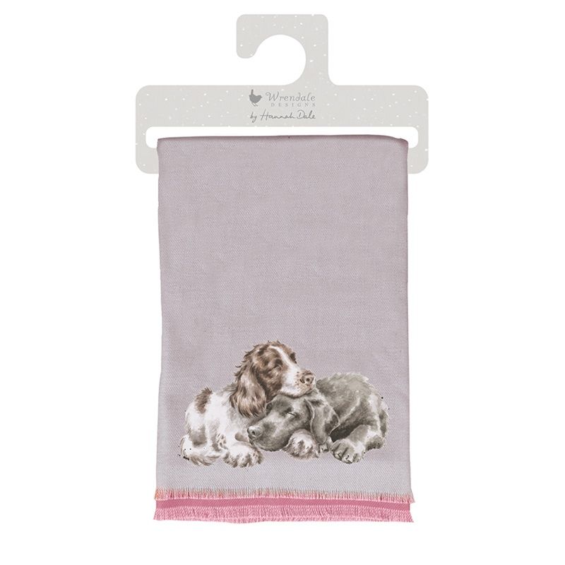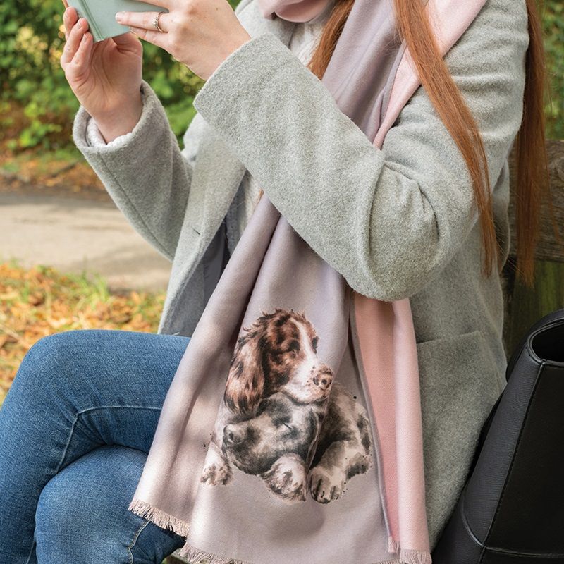 Dámská zimní šála od britské značky Wrendale Designs je skvělá k nošení kolem krku, skvěle zahřeje ramena i záda. Vyrobena je z husté, hřejivé látky a je lemovaná krátkými třásněmi. Z jedné strany je na obou koncích velká akvarelová ilustrace pejsků na světle růžovém pozadí, rubová strana je vyvedena v kontrastní tmavě růžové barvě.