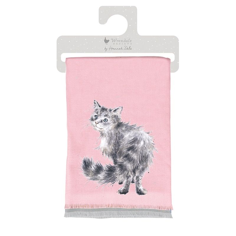Dámská zimní šála od britské značky Wrendale Designs je skvělá k nošení kolem krku, skvěle zahřeje ramena i záda. Vyrobena je z husté, hřejivé látky a je lemovaná krátkými třásněmi. Z jedné strany je na obou koncích velká akvarelová ilustrace kočky na růžovém pozadí, rubová strana je vyvedena v kontrastní modré barvě.